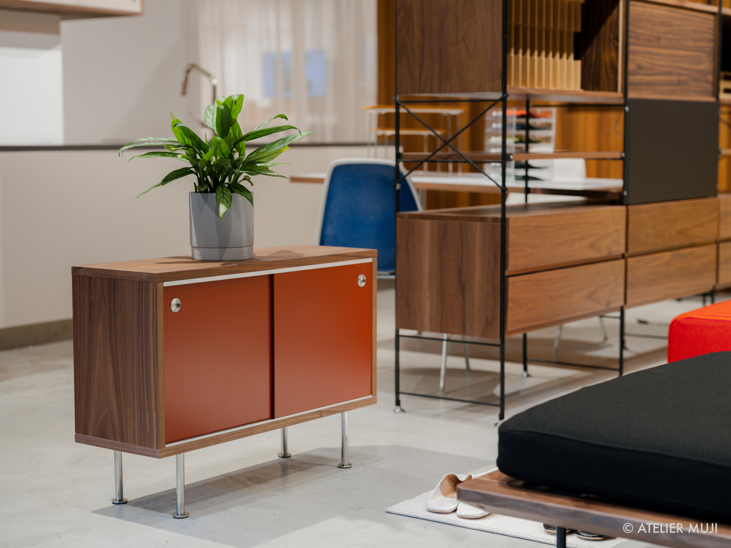 クレデンザ(横型キャビネット)はミッドセンチュリーモダンのアイコン的なデザインです。壁掛けで使用すればさらにミッドセンチュリー感溢れるアーティスティックな雰囲気になります。